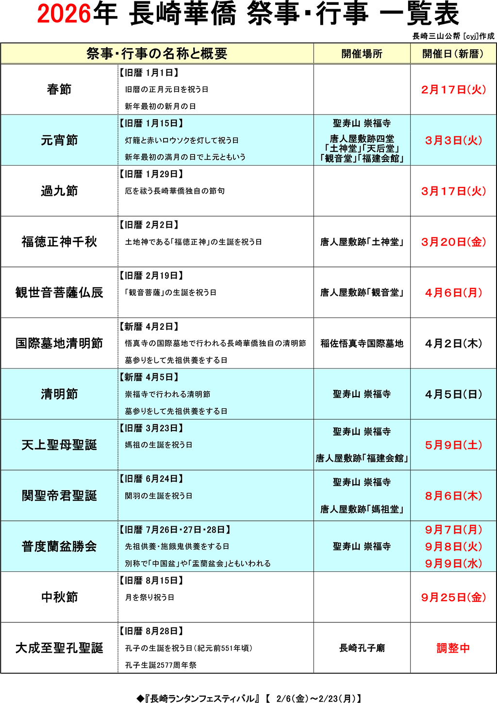 2026年 長崎華僑の祭事